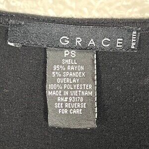 Grace Sz PS English Lace Embellished Blouse Long Sleeve Black Stretch