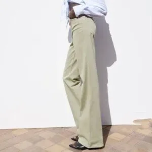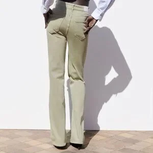 Zara High Rise Flare Fit Jeans Light Khaki