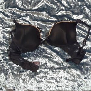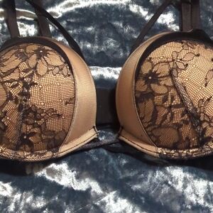 30B Victoria's Secret Bombshell NWOT Add-2-Cups Plunge Bra in Beige+Black Lace