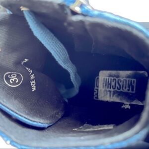 Love Moschino Blue Quilted Hearts Peace Sign High Top Sneakers