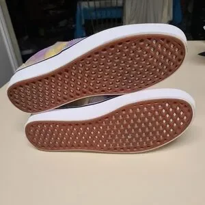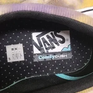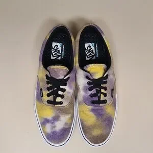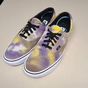 Vans Era Blotched Comfy Cush skateboard sneakers. Purple and Yellow tiedye color way with White mid soles. Size 10 1/2,in excellent used condition.