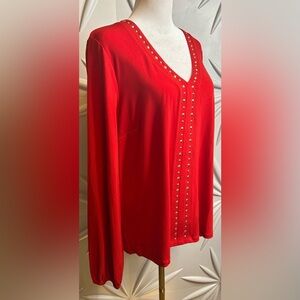 INC SZ L (NWT) Red v-neck top w/gold studs. Bust 44”-48”