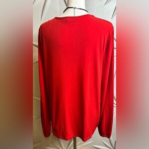 INC size large red v-neck with gold studs at the neckline and down the front. Sleeves have elastic at the wrist. Bust 44”-48”. Fabric polyester 95%, spandex 5%. ACCESSORIES NOT INCLUDED!