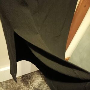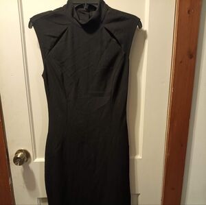 New with the original tags attached. Black sleeveless dress. Length is to approximately mid-calf and it has a slit on one side. It has a high neck with 2 cutouts on front at collar bone. There is an additional cut out on the lower back the buttons up the rest of the way to just below hairline. It is a soft crepe like fabric. Light weight. It's a size Small from Zara. Made in Turkey.