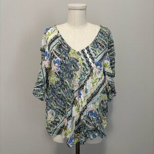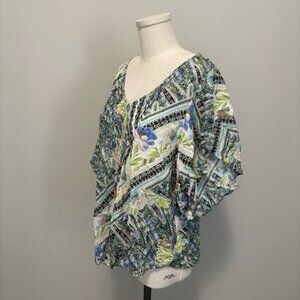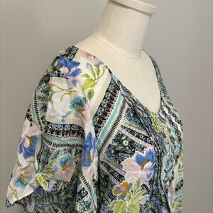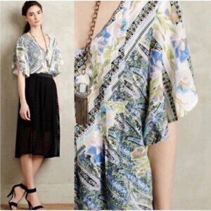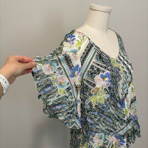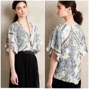 Anthropologie Maeve Maya Floral Flutter Sleeve Blouse Button Shoulder Size 6
