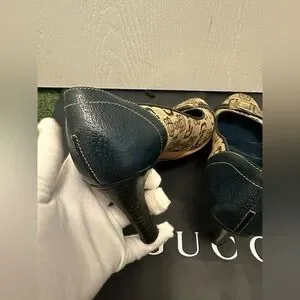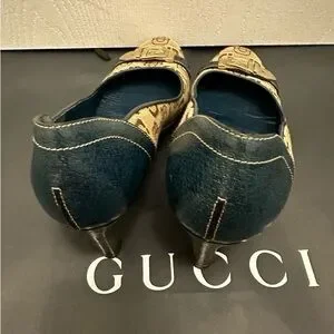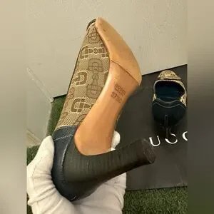 Beautiful Gucci shoes in excellent condition sign of gently normal use no rubbings gold hardware no tarnish no stain no discoloration come with dustbag
