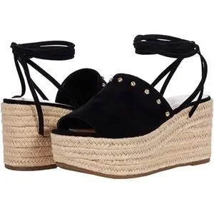 The Marc Fisher Verena has rounded studs that punctuate the topline of a high-flying sandal grounded by a summery espadrille-style platform.