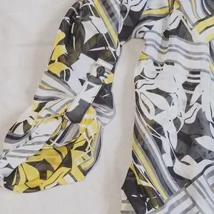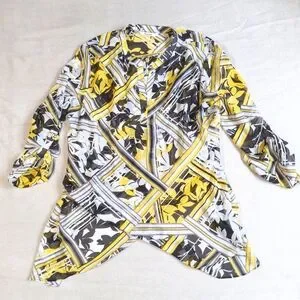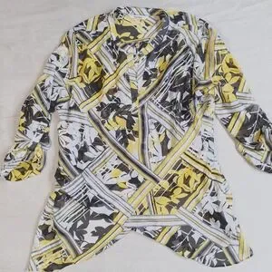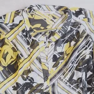 Tanjay Yellow Black Semi Sheer Blouse, Large