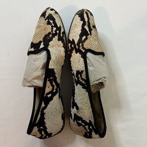 Ugg Ballet Lena Flats Slip On Size 6.5 Lamb Wool Leather Snake Print Cozy Trendy