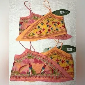 FARM Rio NWT Satin Print Scarf Tie Front Top
