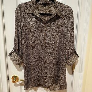 Ann Taylor - Size 12, small leopard print blouse, 3/4 button, pull over head to wear, wear it with sleeves down and buttoned at cuff or rolled up and buttoned at elbow, good condition, gently worn. Smoke free home.