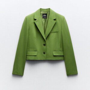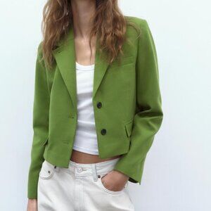 NWT Green Blazer FELT TEXTURE MULTI-POCKET BLAZER Size XS Color Lawn