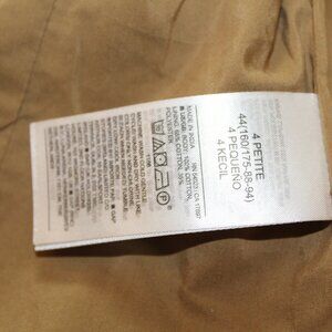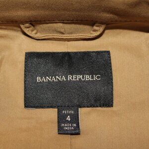 Amazing looking jacket! Tan/khaki cotton with brass-toned buttons. I purchased this new from BR and only wore a few times. In excellent condition. Size 4 Petite.
