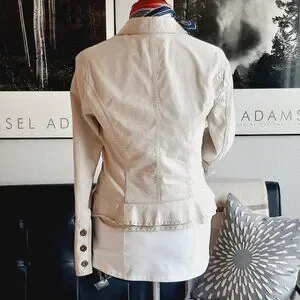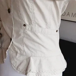 VTG DKNY JEANS tan cotton canvas military utility peplum jacket Sz M