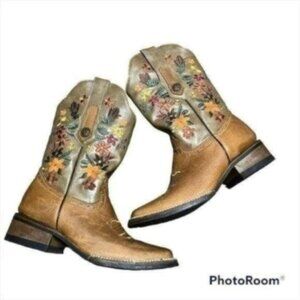 Verthali Cowboy Western Boot Womens Floral Embroidered Size 6.5 Square Toe
