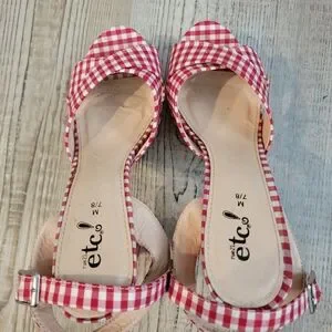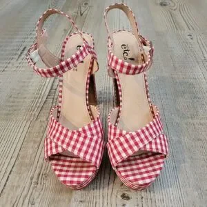 Rue 21 Red and White Gingham Checkered Patterned Heels Size 7/8