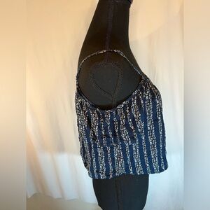 Smocked Off the Shoulder Peplum Crop Top Girls Size XL navy and white. Please see photos for measurements.
