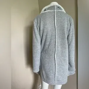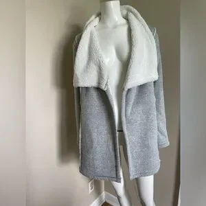 Ann Taylor LOFT Sherpa Lined Fly Away Open Front Jacket Cardigan Gray Medium