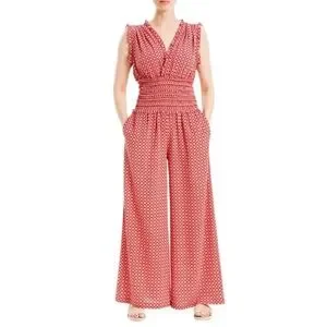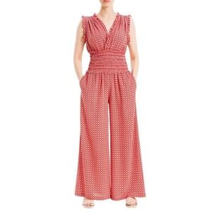 Max Studio Wide Leg Crepe Smocked Jumpsuit