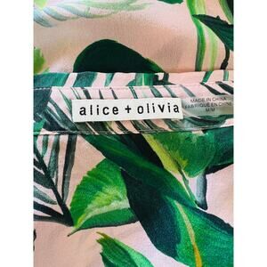 Alice + Olivia Randa Short Sleeve Ruffle Henley Top 100% Silk Size M Preowned
