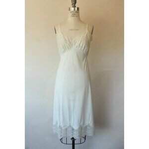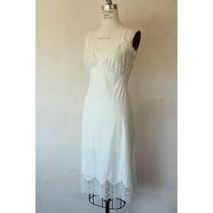 Vintage 1950s Van Raalte Nylon Full Slip, Sauvette, Ivory with Embroidered Lace