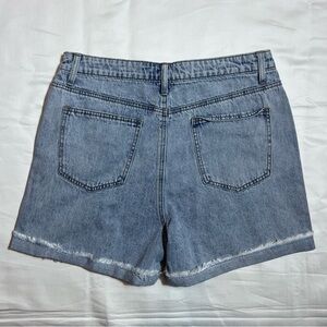 Easel Women's Mid-Rise Washed Denim Distress Shorts, Size Large