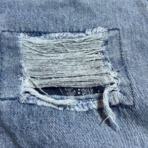 DISTRESSED WITH BANDANDA PATCH UNDER FOR DETAIL