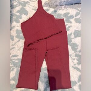 Spiritual Gangster seamless 7/8 ruffle leggings and off-shoulder seamless sports bra matching set