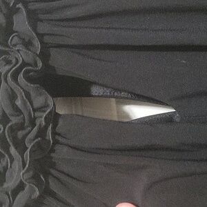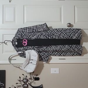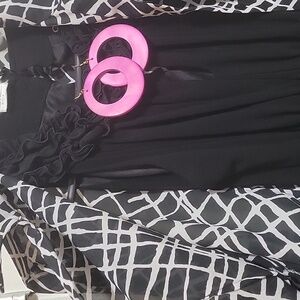 Black dress onyx size 8. keyhole in front and back. ruffled around the neck. sleeveless. positive attitude cover up size 8 missing belt has buttons to button up the front or leave un buttoned. white purses B. makowsky please look at photos. zipper pull was missing so I added a black one to it. Pink light Weight wooden earrings brand new .