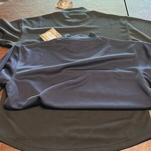 Two shirts black and navy armpit to armpit measures 22 inches shoulder to him on front measures 25 1/2 inches new with tags