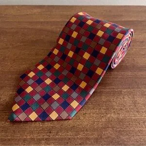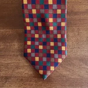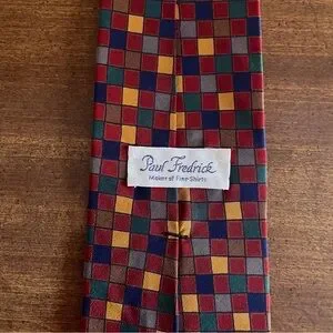 Multicolored checkered vintage and retro Paul Fredrick tie. Hand made in USA of Italian hand-printed silk.