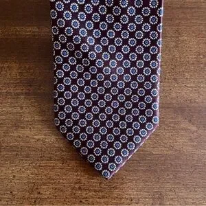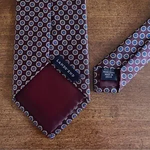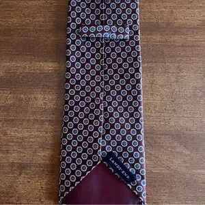 Red and blue Land’s End wide tie. Hand sewn in China from 100% silk. The color is a very deep espresso color with lots of red in it that looks burgundy under the right light.