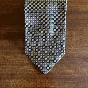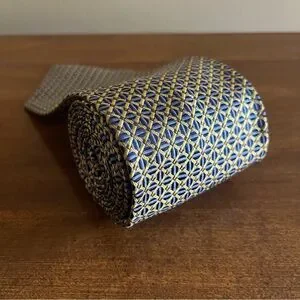 Blue and gold Land’s End wide tie. Hand sewn in USA of imported 100% silk.