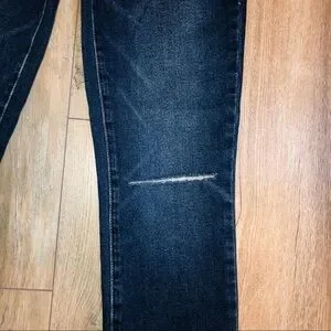 Jeans are brand new with tags and in excellent condition. They are super cute with the light distressing. The stock photo shows the full digressed look after the jeans have been worn. Only has one slit/distressing on the left leg (when wearing them) and has raw hems. Please see all photos for more details.