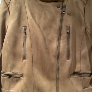 BIKER DETAILS: Like a moto-cross version of the motorcycle jacket, this sporty style has a banded collar, quilting at the shoulder and sleeves, and zippered cuffs.
