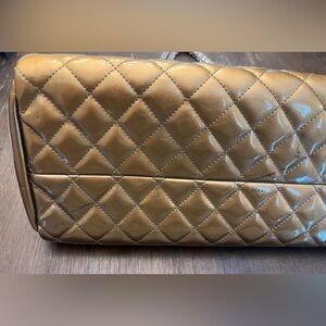 Pre-loved Chanel Metallic Patent Leather Just Mademoiselle Bowler - deep gold/champagne color. Antique silver color hardware.
