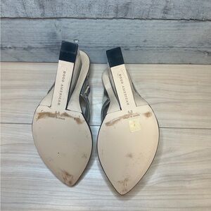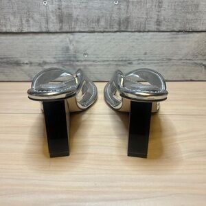 GOOD AMERICAN CINDER F*UCKING RELLA CLEAR WEDGE SANDAL SILVER PATENT LEAT…