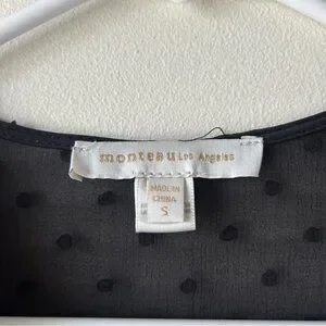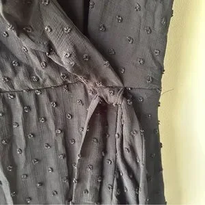Monteau Ruffle Faux Wrap Midi Dress Flutter Sleeves Black Swiss Dot S