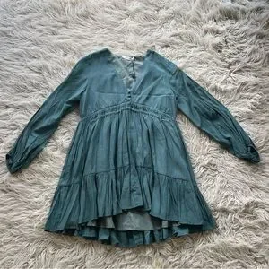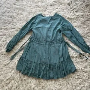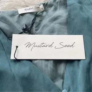 NWT Mustard Seed 'Faded Green' side tie v-neck long sleeve flowy dress sz S