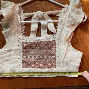FREE PEOPLE NWT ๐๐ Cropped top. Ruffle sleeves with crochet trim. Bohemian. XS