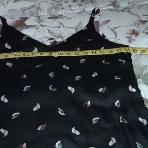 WHBM reversible camisole/tank top. you will absolutely love the many versatile ways you can wear this top! You can wear it on the mauve, burgundy, black & white flowered side; either with the v neck in front or the scoop neck in front.m, or scoop in front, v-neck in back! Since it is also reversible, you can wear it on the black pattered side, which picks up the colors of the flowered side in a unique pattern. You can also wear it both ways, v-neck or scoop neck. The straps are bra friendly. It measures 18" from armpit to armpit & 25" long from top of straps. You can dress it up with a shrug or suit jacket and heels, or with jeans and flats, whichever you desire. The material is soft too! There are no tags because it is reversible and would ruin the look. Smoke free home.