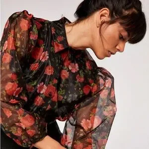 ♥️ Blashe Sheer Dramatic Floral Puff Sleeve Blouse