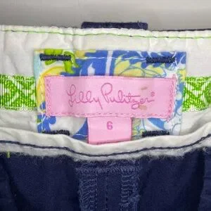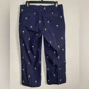 These Lilly Pulitzer capris are adorable. They a navy blue with little lime green martini glasses embroidered throughout. They are in great condition.
