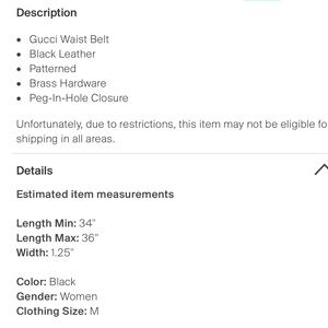 Gucci Women’s Brass Buckle Black Leather Logo Belt Size M