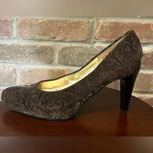 Gorgeous Ron White All Day Heels size 8.5 US, 39 EUR, Black/Gray Velvet blackout, 3 3/4 inch heels, never worn. Excellent condition.