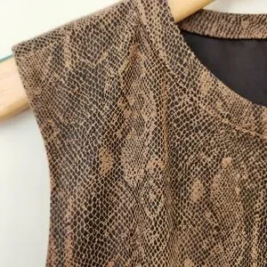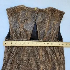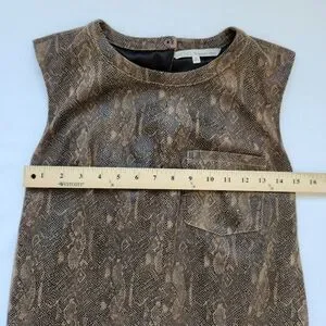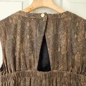 Edgy Snakeskin Print Mini Shift Dress Brown Sleeveless Soft Comfy Trendy Cute XS