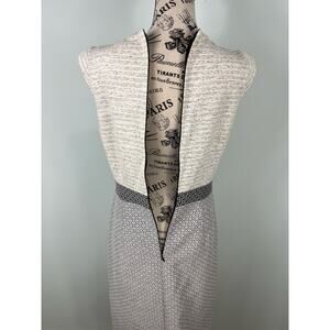 J. Crew White and Gray Dimond Pattern Knee Length Cap Sleeve Dress