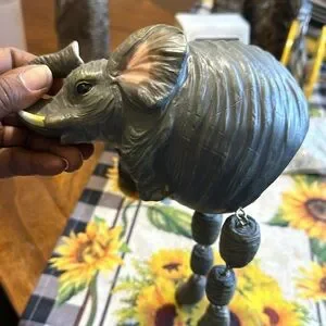 Ceramic Elephant sculpture in GREAT CONDITION no damage… Super cute legs hanging/dangling from your shelf…
