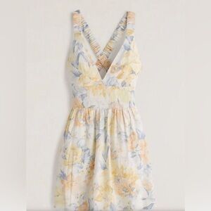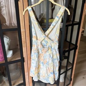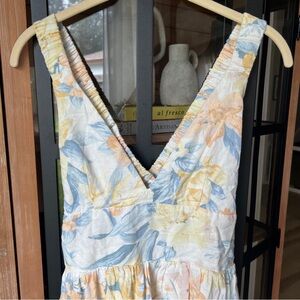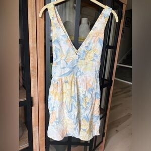 Abercrombie linen romper floral pastel vneck sleeveless watercolor dress