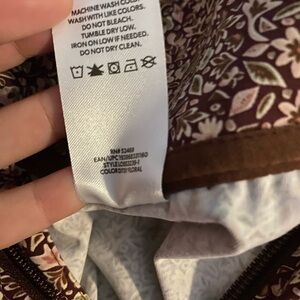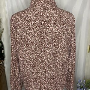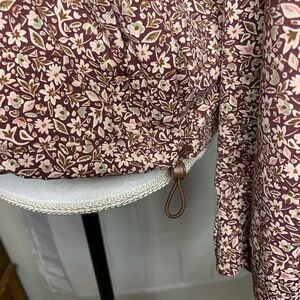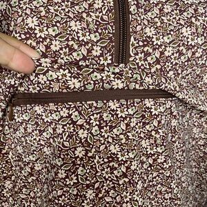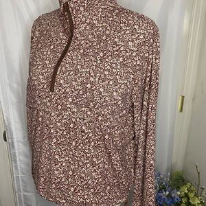 New, without tags, brown & pink, floral, quarter zip, Travel Pullover with a zipper pouch in the front and drawstrings at the waist Sz.xs